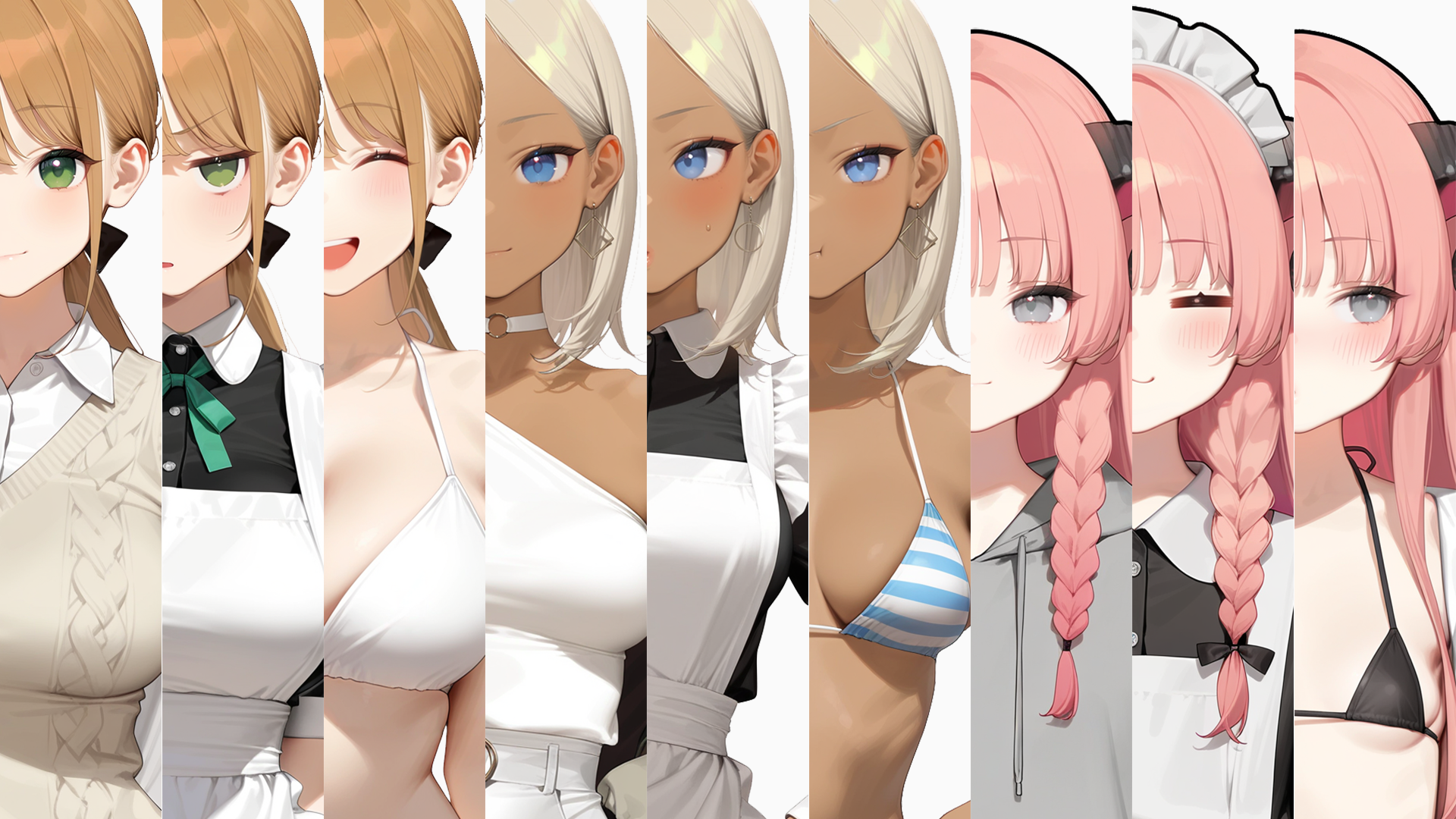 각 캐릭터의 추가 의상 (메이드복, 수영복)